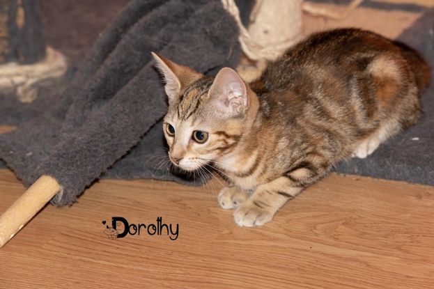 DOROTHY, chaton femelle née le 01/05/2020 Couleur : tigrée marron DOROTHY a été trouvée avec ses 2 sœurs Ikka et Barbara dans un immense bois privé en Vendée où malheureusement il y a fréquemment des personnes qui y déposent discrètement les chatons qu’ils ne veulent pas mais ne font pas stériliser leurs adultes pour éviter les reproductions. Heureusement, un voisin nourrit de nombreux chats errants que nous avons stérilisés et remis en liberté chez lui, du coup les chatons arrivent à trouver la nourriture chez lui et aussitôt il nous contacte. DOROTHY est une adorable chatonne, joueuse et câline. Elle aime aussi « parler » ? Elle a été vermifugée, déparasitée. Elle est testée FIV négatif et FELV négatif, identifiée et primo-vaccinée Frais d’adoption : 160 € Stérilisation obligatoire à 6 mois (caution demandée) En Famille d’accueil à Bessancourt (95) Si vous souhaitez l'adopter, contactez-nous au 06 17 40 10 22 de 9h à 20h, n'hésitez pas à laisser un message sur le répondeur (surtout PAS DE SMS, merci).