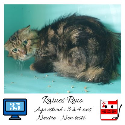 URGENCE EUTHANASIE ! Raines Reno est un mâle de 3-4 ans qui vous attend dans une fourrière du 35. ATTENTION SORTIE AU PLUS TARD LE 31/07/2020 (avant euthanasie) ! Pour adopter, c'est facile : ➡️ On se rend sur la page facebook d'Urgence Fourrière de Bretagne (UFB) -> https://www.facebook.com/sosfourrieresbreizh/ ➡️ On vient en message privé sur la page UFB ➡️ On remplit le questionnaire ➡️ Si le questionnaire est validé, on se rend disponible pour la pré-visite ➡️ On se rend aussi disponible pour venir chercher le loulou en fourrière Les chats sortent de fourrière primo-vaccinés et identifiés. Restera à charge de l’adoptant le rappel de vaccin et la stérilisation qui est OBLIGATOIRE. Les femelles en fourrière ayant été trouvées dans la rue, il y a fort à parier que nombre d'entre elles en âge de l'être soient gestantes ... ---- A PROPOS D'URGENCE FOURRIERE DE BRETAGNE (UFB) Nous sommes un COLLECTIF d'ASSOCIATIONS DE PROTECTION ANIMALE (qui rassemble notamment Moustaches et Compagnie, Bêtes de Scène, les Pachas, Chats Libres de Berné, etc, etc....) Le BUT de ce collectif d'associations est donc de SORTIR ces animaux des fourrières surchargées en les faisant ADOPTER de manière LEGALE par des familles ou en leur trouvant des FAMILLES D'ACCUEIL lorsque des places en association se libèrent.