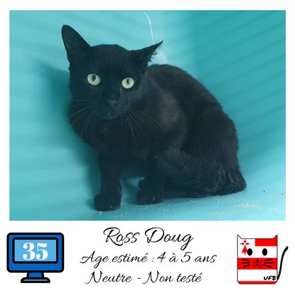 URGENCE EUTHANASIE ! Ross Doug est un mâle de 4-5 ans qui vous attend dans une fourrière du 35. ATTENTION SORTIE AU PLUS TARD LE 31/07/2020 (avant euthanasie) ! Pour adopter, c'est facile : ➡️ On se rend sur la page facebook d'Urgence Fourrière de Bretagne (UFB) -> https://www.facebook.com/sosfourrieresbreizh/ ➡️ On vient en message privé sur la page UFB ➡️ On remplit le questionnaire ➡️ Si le questionnaire est validé, on se rend disponible pour la pré-visite ➡️ On se rend aussi disponible pour venir chercher le loulou en fourrière Les chats sortent de fourrière primo-vaccinés et identifiés. Restera à charge de l’adoptant le rappel de vaccin et la stérilisation qui est OBLIGATOIRE. Les femelles en fourrière ayant été trouvées dans la rue, il y a fort à parier que nombre d'entre elles en âge de l'être soient gestantes ... ---- A PROPOS D'URGENCE FOURRIERE DE BRETAGNE (UFB) Nous sommes un COLLECTIF d'ASSOCIATIONS DE PROTECTION ANIMALE (qui rassemble notamment Moustaches et Compagnie, Bêtes de Scène, les Pachas, Chats Libres de Berné, etc, etc....) Le BUT de ce collectif d'associations est donc de SORTIR ces animaux des fourrières surchargées en les faisant ADOPTER de manière LEGALE par des familles ou en leur trouvant des FAMILLES D'ACCUEIL lorsque des places en association se libèrent.