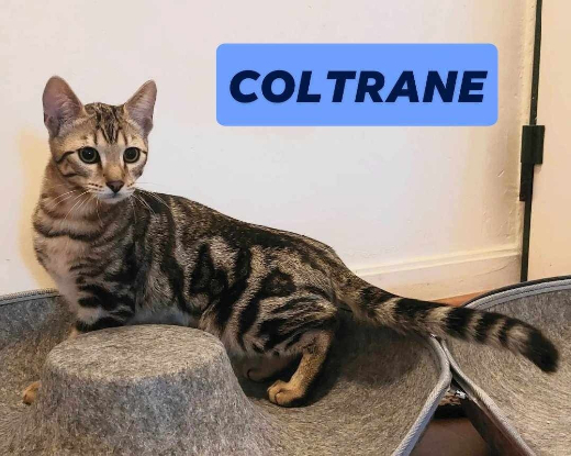 Coltrane est un adorable chaton mâle, croisé Bengal. Avec son regard captivant et son pelage unique, il est aussi charmant qu'attendrissant. Très peureux de nature, Coltrane aura besoin de patience et de douceur pour s'épanouir et se sentir en sécurité dans son nouvel environnement.