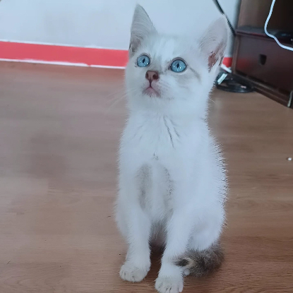"Chababa est un adorable chaton. Elle est joueuse, grimpeuse, câline et très proche de l'homme.