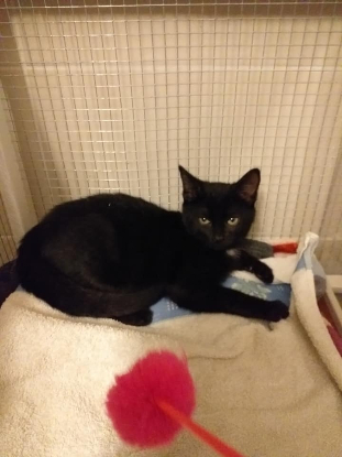 C'est un chaton dont l'âge est estimé à 3 mois et qui s'est montré d'emblée très sociable.