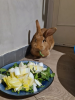 Nala est une grande lapine qui a été trouvée dans un carton en forêt, avec 2 autres lapines.