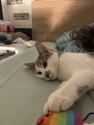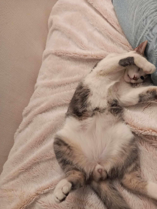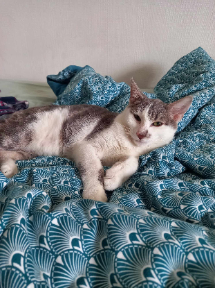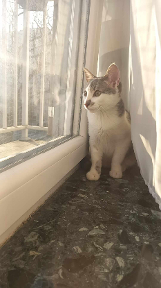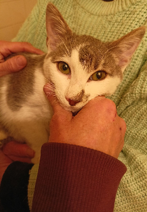C'est un chaton de 6 mois très affectueux qui a dû subir des choses pas très sympas, moustaches coupées, soumission extrême comme s'il s'excusait d'exister mais il reste très attaché à l'humain malgré tout.