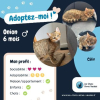 Frais d’adoption : 240 euros, comprenant l’identification, la primo-vaccination, la castration, le test FIV- et FELV-, et le déparasitage.