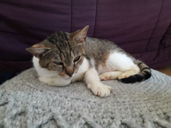 Triss est une femelle tabby et blanche d'environ 8 ans. Triss est une chatte assez craintive qui aura besoin de temps et d'amour pour s'adapter à un nouvel environnement. Mais lorsqu'elle est en confiance, c’est une boule d’amour et une machine à ronrons. Elle cherche un environnement très calme. Elle a reçu plusieurs soins vétérinaires : → identification par une puce électronique → vaccination contre le typhus et le coryza → stérilisation Un test FIV/FeLV a été réalisé : il est négatif pour les deux. Elle est adoptable contre une participation aux frais vétérinaires.