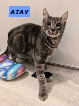 Très câlin avec l'humain, Atay adore l'attention et les caresses. Il ronronne comme un moteur et fait des biscuits sur vos genoux.