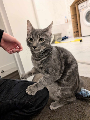 N'ayant pas grandi avec ses congénères, il se montre pour le moment très enthousiaste à leur rencontre mais n'a aucunes manières félines et se fait donc envoyer paître. Un copain chat plus âgé, patient mais ferme serait un plus.