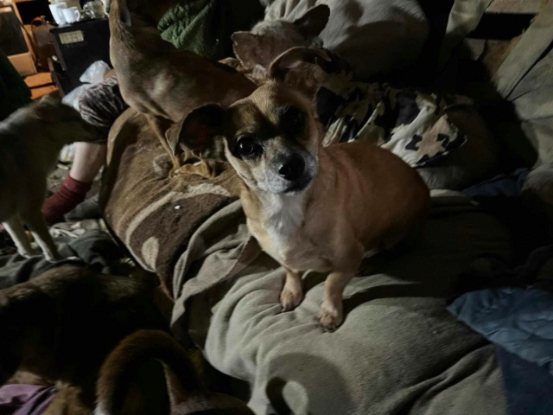 Rosie a été récupéré chez une dame âgée qui s'est laissé déborder et qui n'a pas soigné ses 25 chiens et chats. Ils vivaient tous ensemble dans un taudis. Ses voisins ont appelés la fourrière l'ASPA pour venir chercher les chiens.