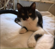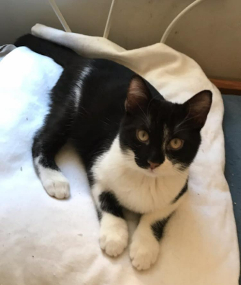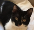 C'est un grand chaton à la belle robe noire et blanche, né en juin.