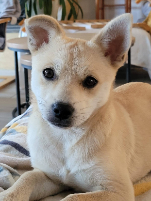 Yumi est une jeune croisée shiba inu née en septembre 2024. Son poids adulte est estimé entre 7 et 10 kg. Elle es vaccinée, identifiée et déparasitée.