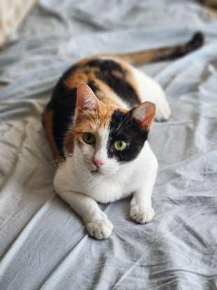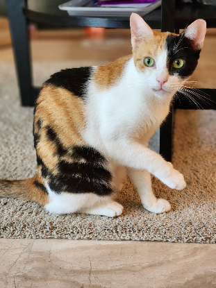 PATI est une femelle chat domestique de couleur calico. Elle est stérilisée, vaccinée et identifiée sous le n°94416000214711. Elle a été traitée contre les parasites internes et externes. Elle a été testée FIV FELV négatif. Sa date de naissance estimée 01 octobre 2021. Un certificat de bonne santé sera fourni lors de son adoption. Elle est actuellement en famille d’accueil à Dubaï. Chat d’intérieur pour l’instant mais pourra avoir un accès à un extérieur sécurisé (jardin, patio, balcon ou terrasse sécurisée) une fois adoptée.