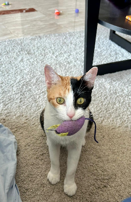 PATI est un véritable joyau. Elle est calme, propre et ronronne dès qu’elle voit quelqu'un. Elle adore demander des câlins ou simplement se blottir sur vos genoux. Elle est également joueuse et se fera un plaisir de vous apporter son jouet préféré (une petite souris violette) pour profiter de moments de jeu ensemble. On adore la voir courir et jouer c’est un plaisir à observer, d’autant plus qu’elle est généralement une chatte si calme. Indépendante mais affectueuse, PATI remplira votre vie de bonheur. Cependant, elle ne s’entend pas avec les autres chats, il est donc essentiel qu’elle trouve un foyer sans autres animaux, mais plein d'amour.