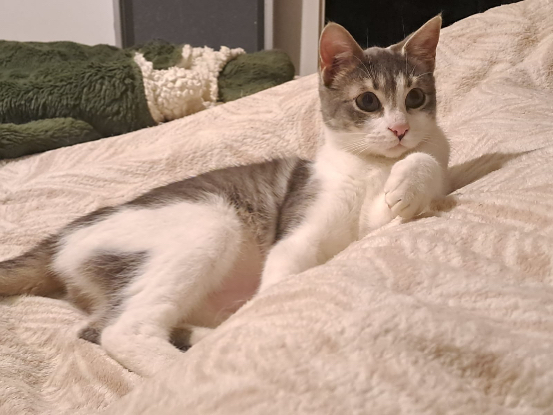 Némésis est une petite chatonne timide au début mais elle adore jouer avec son frère et là, plus rien ne lui fait peur! Elle aime jouer àavec les pieds de son main et se coller à ses jambes dans le lit. L'idéal serait qu'elle soit adaptée dans une famille avec un autre chat et sans jeune enfant dans un premier temps.
