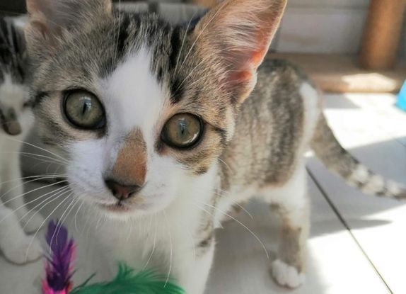 SHAYANA est une femelle tigrée et blanche à poils courts Naissance estimée le 26 avril 2020 de race chat type européen non-inscrit au LOOF. SHAYANA est une chatonne très joueuse, elle est câline avec les humains qu'elle connait. Histoire : Arrivée au refuge avec sa maman Dolores et sa sœur Santana Femelle Race : chat type européen non-inscrit au L.O.O.F. Date de naissance estimée le 26 avril 2020 Identification par puce électronique Vaccinée, testée FIV-/Felv - Vermifugée, déparasitée, non stérilisée car trop jeune Pour devenir sa famille, n'hésitez pas à remplir le formulaire ci-dessous : https://www.chat-quiberon.com/formulaire-dadoption/