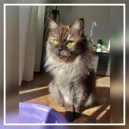 Elle s'entend bien avec les autres chats mais a besoin de bonnes présentations. Pour cette raison, nous privilégierons une famille sans jeunes chats ou sans autres chats.