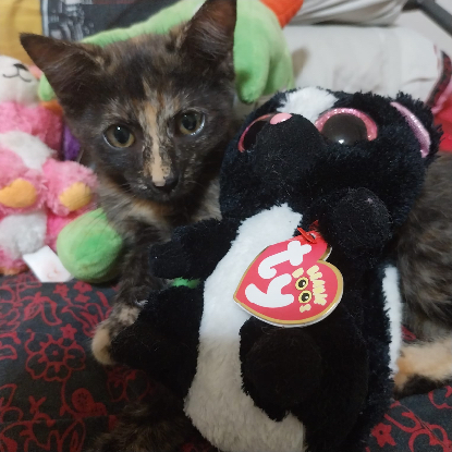 Jolie petite Luna l’année commence par son abandon , recueillie en fourrière , elle échappe à l’euthanasie, toute douce avec l’humain toujours à la recherche d’un câlin d’une caresse , petite coquine très joueuse , elle aime dormir près de son humain , un vrai pot de colle qui s’est remis rapidement de son abandon et qui cherche toujours des caresses née en avril 2024