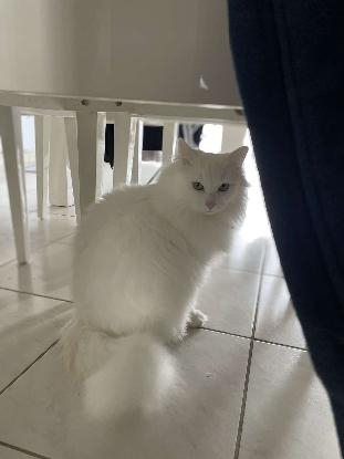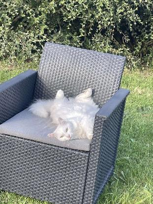 Nous vous présentons Snow, une jolie chatte au magnifique pelage et aux yeux captivants. Avec ses longs poils soyeux, elle ressemble à une véritable reine de beauté féline. Snow est arrivée chez nous après le décès de sa propriétaire et nous cherchons désormais un foyer calme et aimant pour elle.