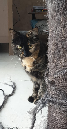C'est une minette qui a énormément progressé en famille d'accueil , elle aime les caresses et les demande en se roulant par terre , elle est joueuse avec des moments de calme et vit avec d'autres chats et des enfants sans problème même si elle n'aime pas le bruit et quand il y a trop de monde .