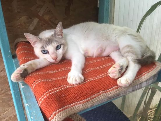 BLANCHE NEIGE est une femelle typée siamoise à poils courts et yeux bleus Naissance estimée le 01 Juin 2018 de race chat type européen non-inscrit au LOOF. BLANCHE NEIGE est une chatte qui n'a pas dû avoir une vie très facile. Elle est arrivée avec ses bambins et un petit nez bien abîmé. Elle n'est en rien agressive mais aura besoin d'un peu de temps pour prendre confiance en l'humain, c'est une super maman. Histoire : Blanche Neige est la maman de Timide, Pro, Atchoum, Joyeux et Dormeur. Femelle Race : chat type européen non-inscrit au L.O.O.F. Date de naissance estimée le 01 Juin 2018 Identification par puce électronique Vaccinée, testée FIV-/Felv - Vermifugée, déparasitée, stérilisée Pour devenir sa famille, n'hésitez pas à remplir le formulaire ci-dessous: https://www.chat-quiberon.com/formulaire-dadoption/