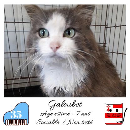 URGENCE EUTHANASIE ! Galoubet est un mâle de 7 ans sociable qui vous attend dans une fourrière du 35. ATTENTION SORTIE AU PLUS TARD LE 7/08/2020 (avant euthanasie) ! Pour adopter, c'est facile : ➡️ On se rend sur la page facebook d'Urgence Fourrière de Bretagne (UFB) -> https://www.facebook.com/sosfourrieresbreizh/ ➡️ On vient en message privé sur la page UFB ➡️ On remplit le questionnaire ➡️ Si le questionnaire est validé, on se rend disponible pour la pré-visite ➡️ On se rend aussi disponible pour venir chercher le loulou en fourrière Les chats sortent de fourrière primo-vaccinés et identifiés. Restera à charge de l’adoptant le rappel de vaccin et la stérilisation qui est OBLIGATOIRE. Les femelles en fourrière ayant été trouvées dans la rue, il y a fort à parier que nombre d'entre elles en âge de l'être soient gestantes ... ---- A PROPOS D'URGENCE FOURRIERE DE BRETAGNE (UFB) Nous sommes un COLLECTIF d'ASSOCIATIONS DE PROTECTION ANIMALE (qui rassemble notamment Moustaches et Compagnie, Bêtes de Scène, les Pachas, Chats Libres de Berné, etc, etc....) Le BUT de ce collectif d'associations est donc de SORTIR ces animaux des fourrières surchargées en les faisant ADOPTER de manière LEGALE par des familles ou en leur trouvant des FAMILLES D'ACCUEIL lorsque des places en association se libèrent.