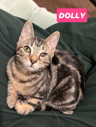 Dolly n’a pas eu un début de vie facile. Elle a été trouvé dans la rue atteinte d’un coryza et a développé un ulcère à l’œil gauche. Aujourd’hui en cours de guérison complète, son œil garde un souvenir de cette période difficile en ayant l’aspect plus petit que son œil droit.