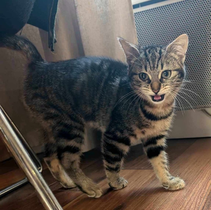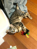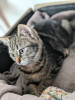 Femelle tigrée. Elle a son caractère et n’a pas froid aux yeux. Elle saura attirer votre attention et se faire comprendre mais est aussi friande de câlins. C'est pour le moment la plus gourmande de la portée. Sa spécialité : les revendications. Propre