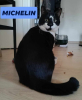 Michelin est un male adulte calme et patient. Très intelligent, il se montre de suite tres chaleureux et n'a pas peur des gens y compris des inconnus, son seul ennemi actuellement reste le méchant aspirateur.