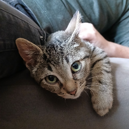 Martin est un petit chaton très câlin et très joueur. Il adore venir se blottir contre son humain, que ce soit de jour ou de nuit. Les séances de caresses ne le rendent pas moins vif pour autant, et si un jouet potentiel vient à capter son attention, le voilà parti dans une folle séance de jeux !