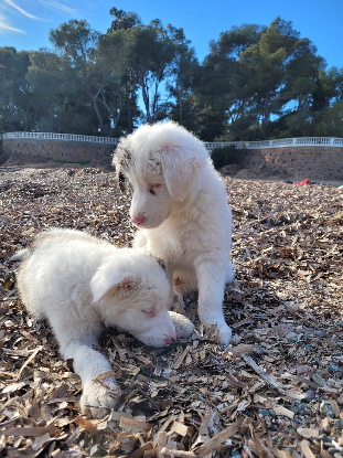 Falcor et Puccini sont 2 frères nés le 10/11/2024, chiens mâles Border Collie, poil mi-long Bleu Merle, vaccinés, identifiés, protégés contre les parasites internes et externes.