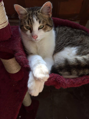 NOEL est un chat mâle tigré blanc de 10 mois propre et gentil.