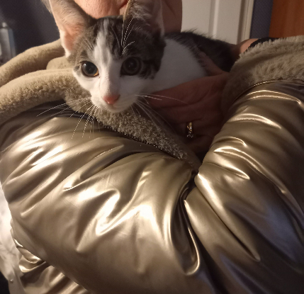 Comportement : VOICE a été récupéré par les pompiers de Bourges. Il etait tombé dans un égout, nous lui avons évité la spa de justesse, c'est un chaton adorable et très sociable.