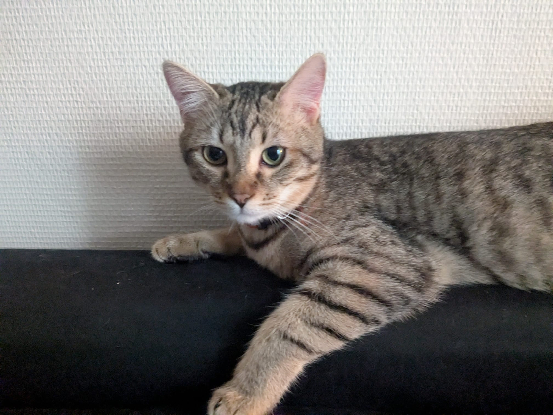 Rosa est une chatte de 6 mois active et très joueuse. Elle adore les câlins et jouer avec des balles. Elle ronronne beaucoup et n'a pas peur de grand chose.