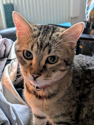 Elle ne connaît pas les chiens et n'est pas à l'aise avec les enfants en bas âge. Elle s'entend bien avec les autres chats.