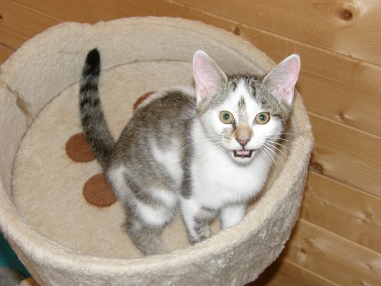 LINE est un femelle blanche et tigrée à poils courts Naissance estimée le 15 mai 2020 de race chat type européen non-inscrit au LOOF. LINE est une chatonne joueuse et curieuse. Elle adore les câlins. Histoire : Line est la sœur de Fée, elles ont étaient trouvée par des saisonniers dans un carton. Femelle Race : chat type européen non-inscrit au L.O.O.F. Date de naissance estimée le 15 mai 2020 Identification par puce électronique Vaccinée, testée FIV-/Felv - Vermifugée, déparasitée, non stérilisée car trop jeune. Pour devenir sa famille, n'hésitez pas à remplir le formulaire ci-dessous: https://www.chat-quiberon.com/formulaire-dadoption/