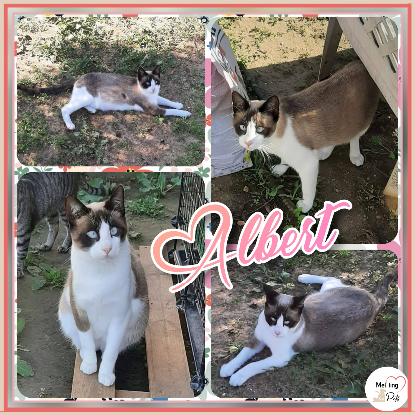 Il était réservé en vue d'une adoption mais en raison de son FELV, l'adoption a finalement été annulée et Albert attend toujours sa famille pour la vie.