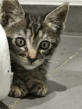 Chaton femelle age 2 mois couleur tortie tabby Caractère tres caline Histoire trouvee dans la rue maigre et sale