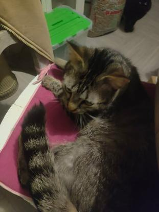 Uriel est né le 01/09/23. Après une première adoption en mai 2024, Uriel est revenu à l'association. Ce petit bonhomme adore jouer et dormir. Uriel cherche une famille avec enfants et d'autres animaux.