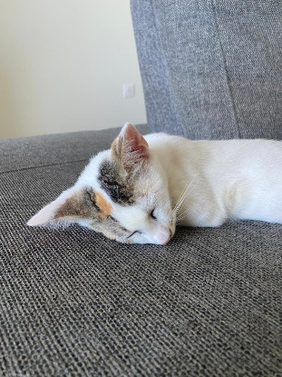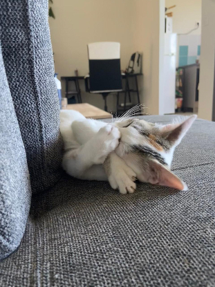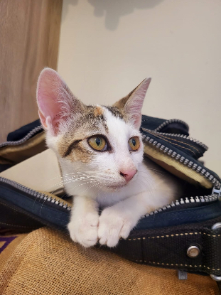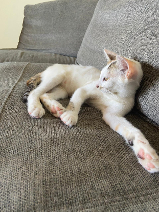 Message de la FA : "Naïla est une petite merveille d’amour. Dès qu’elle croise votre regard, elle accourt pour réclamer des caresses et de l’attention. Sa nature affectueuse et son caractère sociable en font le chaton idéal pour une famille à la recherche d’un compagnon proche et attentionné."