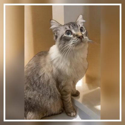 C'est une superbe chatte, très douce, sociable et affectueuse.