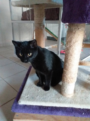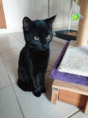 C'est un chaton de 5 mois très joueur et devenu très sociable, il protège beaucoup le dernier chaton encore craintif et qui n'est pas encore à l'adoption