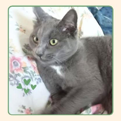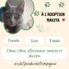 Makita est une magnifique chatte toute grise d'environ 9 mois, qui vivait dehors à Varces, nourrie par une habitante du quartier. Nous l’avons prise en charge très récemment et placée en famille d’accueil. Elle a très vite révélé son caractère sociable, doux et câlin !