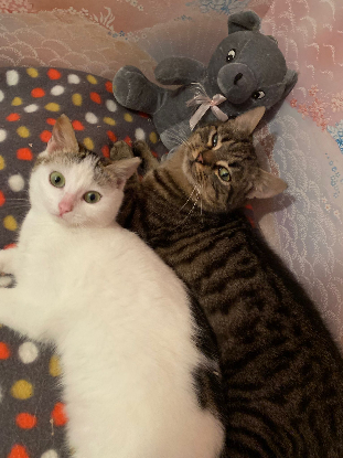 Ce qui le rend particulièrement heureux ? La compagnie de ses congénères ! Idaho aime la présence d’autres chats et la recherche volontiers. Un foyer avec un compagnon félin serait donc idéal pour lui. Il est aujourd’hui très fusionnel avec sa sœur. Une double adoption serait formidable pour ces deux chatons.