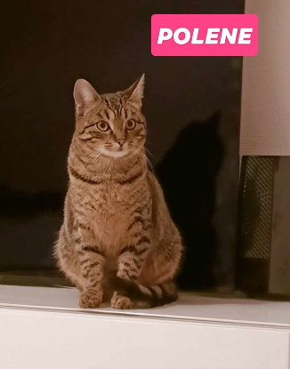 Polene est une petite femelle timide mais adorable. Plutôt habituée à vivre avec son frère et ses sœurs elle est encore craintive de l’humain. Ainsi, en journée elle aime se cacher dans le plus profond des recoins, mais la nuit elle ne manquera d’explorer son nouveau terrain de jeu. Pas agressive pour un sou, elle se laisse caresser mais file vite se cacher.