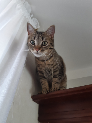 Tigrette, une petite femelle, apprécie passer des moments spéciaux avec son humain, que ce soit pour jouer ou profiter de câlins. D'un tempérament doux, elle recherchera le calme afin de se reposer et aura tendance à se dissimuler si elle préfère ne pas être dérangée. C'est un chat qui a besoin d'extérieur et de vivre avec un autre chat pour être pleinement épanoui.