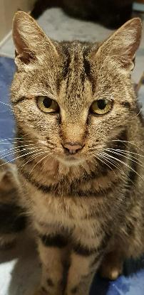 Karmen est une chatte adulte sociable, récupérée par l'association dans le jardin d'une dame bienveillante qui l'a nourri elle et ses 4 chatons.