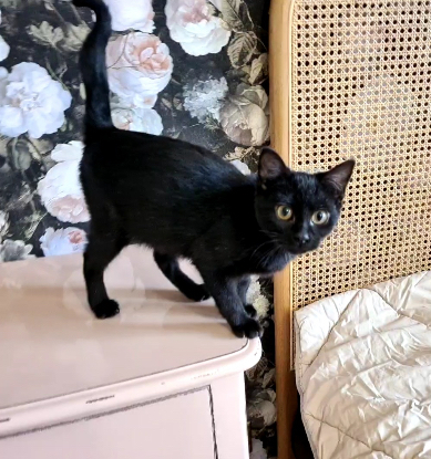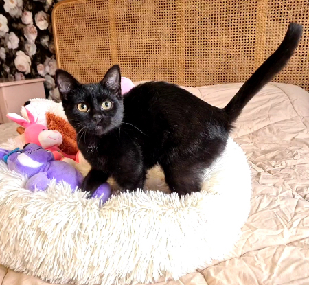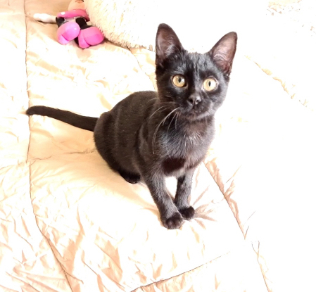 La demoiselle n'a pas tardé à montrer son caractère de petit chaton plein d'énergie. Elle profite à présent de la vie. Elle aime jouer, courir, escalader, faire la fofolle, découvrir de nouvelles choses. Et c'est un véritable amour. Très câline, une miss bisous qui aime venir dans les bras.
