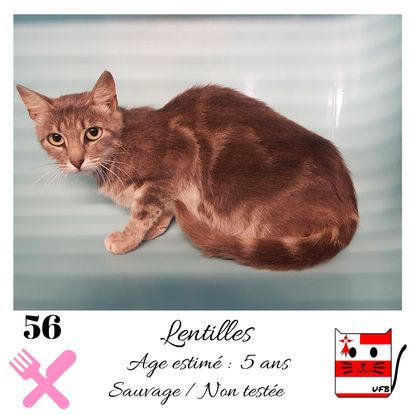 URGENCE EUTHANASIE ! Lentille est une femelle de 5 ans sauvageonne (un comportement normal en fourrière) qui vous attend dans une fourrière du 56. ATTENTION SORTIE AU PLUS TARD LE 14/08/2020 (avant euthanasie) ! Pour adopter, c'est facile : ➡️ On se rend sur la page facebook d'Urgence Fourrière de Bretagne (UFB) -> https://www.facebook.com/sosfourrieresbreizh/ ➡️ On vient en message privé sur la page UFB ➡️ On remplit le questionnaire ➡️ Si le questionnaire est validé, on se rend disponible pour la pré-visite ➡️ On se rend aussi disponible pour venir chercher le loulou en fourrière Les chats sortent de fourrière primo-vaccinés et identifiés. Restera à charge de l’adoptant le rappel de vaccin et la stérilisation qui est OBLIGATOIRE. Les femelles en fourrière ayant été trouvées dans la rue, il y a fort à parier que nombre d'entre elles en âge de l'être soient gestantes ... ---- A PROPOS D'URGENCE FOURRIERE DE BRETAGNE (UFB) Nous sommes un COLLECTIF d'ASSOCIATIONS DE PROTECTION ANIMALE (qui rassemble notamment Moustaches et Compagnie, Bêtes de Scène, les Pachas, Chats Libres de Berné, etc, etc....) Le BUT de ce collectif d'associations est donc de SORTIR ces animaux des fourrières surchargées en les faisant ADOPTER de manière LEGALE par des familles ou en leur trouvant des FAMILLES D'ACCUEIL lorsque des places en association se libèrent.
