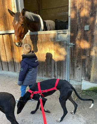Elle vit en famille d'accueil dans le sud-ouest avec plusieurs copains canins et félins. Elle pourra donc vivre avec des chats. Son jeu préféré est la course ! Alors l'idéal pour elle sera d'avoir un compagnon de jeu endurant et rapide !