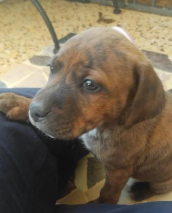 Petit mâle d’un mois et demi, x staffie/epagneul.